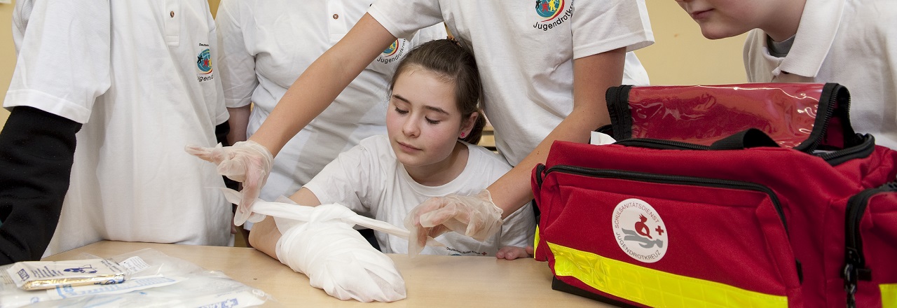 Mit Kampagnen, Aktionen und Initiativen machen wir auf kritische Themen aufmerksam. Unsere Mitglieder setzen sich mit vereinten Kräften für positive gesellschaftliche Entwicklungen ein. In fast jeder Stadt und Gemeinde in Deutschland bietet das Jugendrotkreuz regelmäßige Gruppenstunden an: Mit viel Spaß werden Erste Hilfe-Maßnahmen geübt, Projekte geplant und Workshops durchgeführt. Berg- und Wasserwacht bieten Kurse für spezielle Rettungstechniken an. Internationale Begegnungen und Hilfsprojekte bieten dir die Chance, Kinder und Jugendliche aus anderen Ländern zu treffen, verschiedene Lebensweisen kennen zu lernen und dich gleichzeitig für ein starkes solidarisches Miteinander einzusetzen. Zusammen mit Schulen organisiert das Jugendrotkreuz außerdem Schulsanitätsdienste. Als in Erster Hilfe ausgebildete*r Schulsanitäter*in kannst du deine Mitschüler*innen auf dem Schulgelände bei einem Unfall helfend zur Seite stehen und die medizinische Erstversorgung übernehmen. Rund um das zentrale Thema "humanitäre Werte" bieten wir außerdem Unterrichtsmaterialien für Schulen und Arbeitshilfen für JRK-Gruppenstunden an. Die Inhalte beziehen sich dabei direkt auf die Lebenswelt von Kindern und Jugendlichen und helfen dabei soziales Engagement  zu wecken.